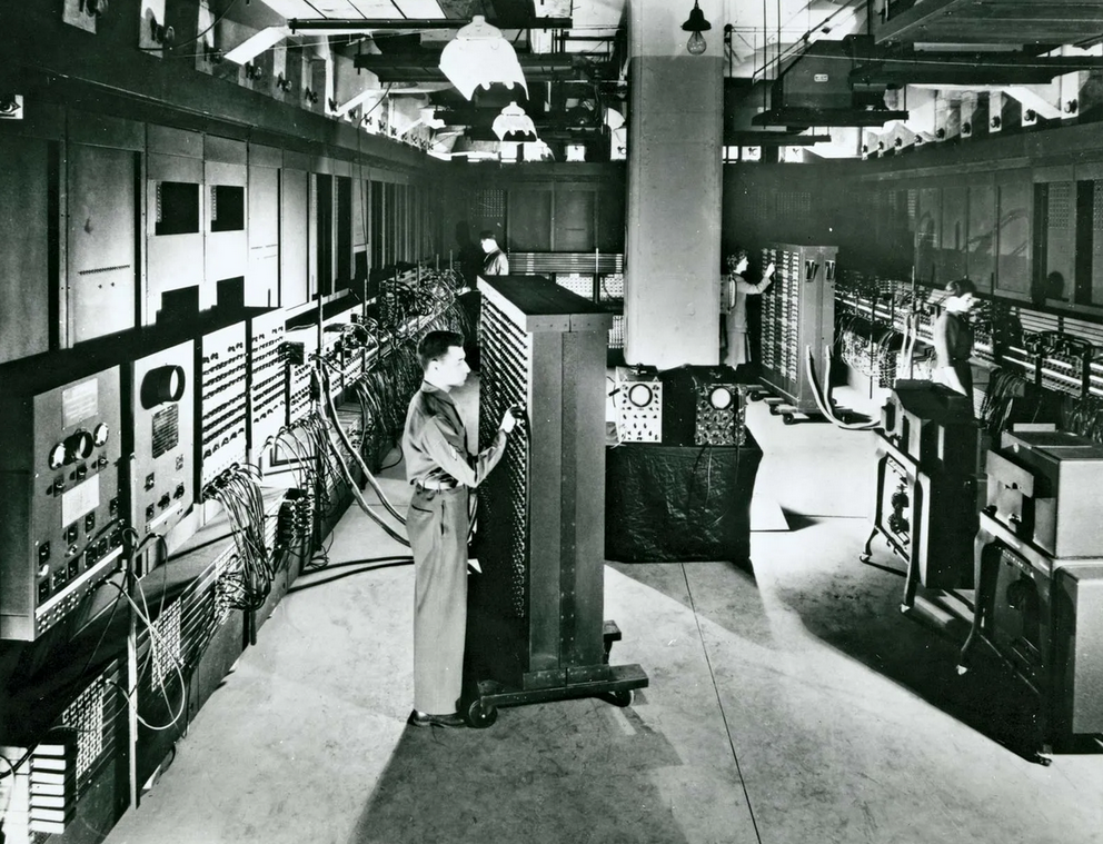 *1* En combinant plusieurs transistors entre eux, il est possible de faire raisonner un circuit électronique de manière logique. (logique booléenne) Plus on intégrera de transistors, plus la quantité d'informations à traiter pourra être importante. (et plus le raisonnement de l'ordinateur pourra être évolué) Les premiers ordinateurs comportaient quelques milliers de transistors. En 2024 les transistors d'un ordinateur se comptent par centaines de millions, voire par milliards ! *2* Plus les circuits électriques seront miniaturisés, plus le traitement des informations sera rapide. (car l'électricité a alors moins de chemin à parcourir) Dans le futur la technologie optique (fibre optique) pourrait remplacer l'électricité. (Car la vitesse de la lumière est supérieure à celle de l'électricité) _____________________________________________________________ Rendez-vous désormais à la partie 4 de cette séquence... En effet, il nous reste encore un mystère à élucider : La première version de l'ENIAC ne pouvait réaliser qu'un seul type de tâche à la fois. Si l'on souhaitait lui faire faire une autre tâche, il fallait réaliser une nouvelle combinaison de lampes (transistors). Cela se faisait à la main, grâce à des fils électriques que l'on branchait un à un entre chaque lampe. Cela pouvait prendre plusieurs jours... Aujourd'hui un ordinateur est capable de passer, en quelques clics, de la lecture d'une vidéo à l'impression d'un texte ou à l'envoi d'un email. Ceci fut rendu possible grâce à la programmation.