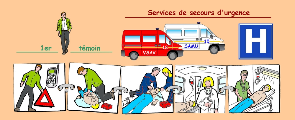 ![]() Le rôle du secouriste n'est pas d'apporter des soins. Son rôle est d'éviter que l'état de la victime ne s'aggrave ; et ce jusqu'à l'arrivée des secours. Le secouriste est le premier maillon de la chaîne de secours ; il aura besoin de l'aide de personnes plus expérimentées. Pour pouvoir bénéficier de cette aide, il doit alerter les secours. Nous allons apprendre à le faire efficacement.