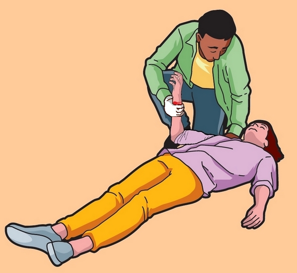 comprimer la plaie, sans jamais relâcher.